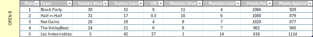 In the event that two teams have the same record (Games Won/Lost) at the end of the regular season, the following scheme will be used to seed those teams for the play-offs: